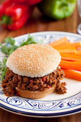 How on earth do you make a Sloppy Joe look classy? You don't =). They are just good ol' shloppy, yes shloppy, deliciousness. Piled high and spilling over. It's impossible for any bun to fully retain all that saucy, meaty goodness. How I love a good Sloppy Joe. They may not be the fanciest meal but they are oh so scrumptiously tasty. I grew up eating them so I will always love them. These far outdo what comes in a can. Isn't everything better made fresh from scratch? Don't be scared of the long list of ingredients, other than the fresh peppers, most of them are ingredients you likely already have on hand. I kept adding a little of this and a little of that until I got this recipe just where I wanted it. If you are a cheeseburger fan, try them topped with a sprinkling of freshly grated cheddar cheese. Also, if you like a little heat feel free to add in some cayenne pepper or red pepper flakes. Enjoy!